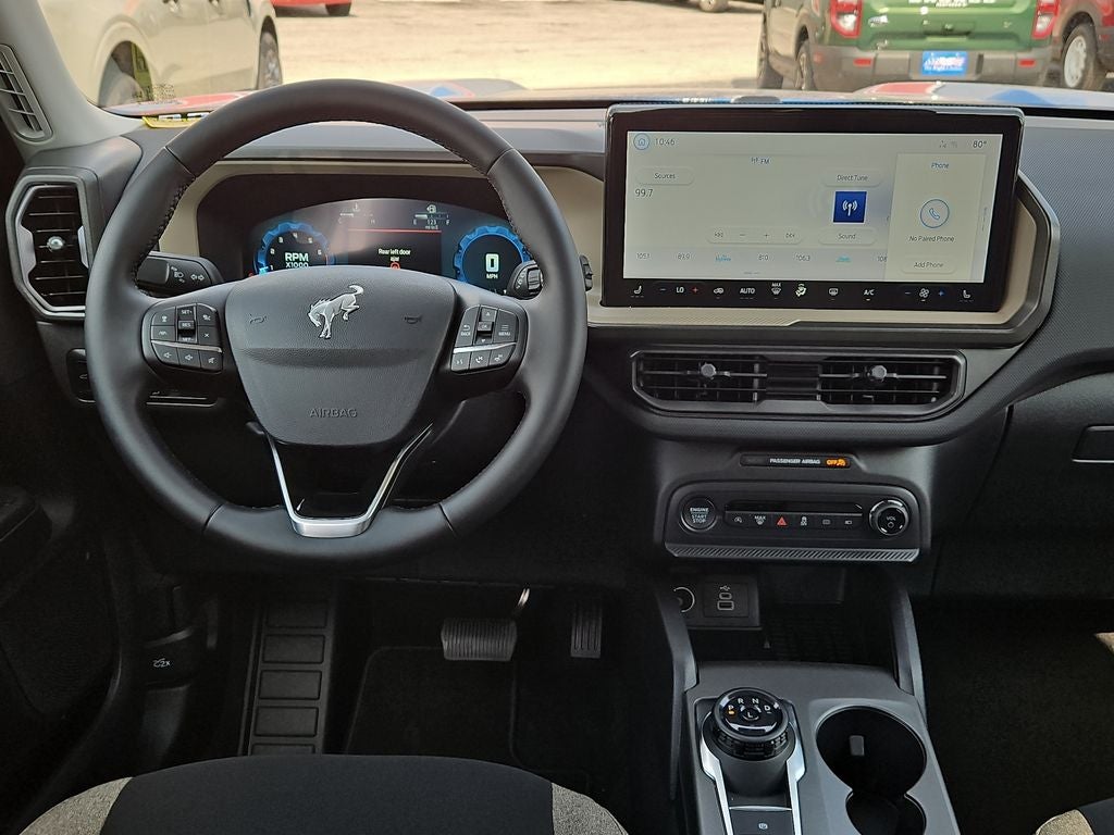 Velocity Blue Metallic 2025 Ford Bronco Sport Big Bend 4WD 8-Speed Automatic 4D Sport Utility This vehicle comes with the following features and options : Convenience Package (Front Driver/Passenger Seat Back Map Pockets, Heated 8-Way Power Driver's Seat, LED Fog Lamps, Premium Wrapped Steering Wheel, and Universal Garage Door Opener (UGDO)), Equipment Group 200A, 4-Wheel Disc Brakes, 6 Speakers, ABS brakes, Air Conditioning, Alloy wheels, AM/FM radio: SiriusXM, AM/FM Stereo, Auto High-beam Headlights, Automatic temperature control, Brake assist, Cloth w/Easy-to-Clean Front Bucket Seats, Compass, Delay-off headlights, Driver door bin, Driver vanity mirror, Dual front impact airbags, Dual front side impact airbags, Electronic Stability Control, Emergency communication system: SYNC 4 911 Assist, Four wheel independent suspension, Front anti-roll bar, Front Bucket Seats, Front Center Armrest, Front License Plate Bracket, Front reading lights, Fully automatic headlights, Heated door mirrors, Illuminated entry, Knee airbag, Low tire pressure warning, Occupant sensing airbag, Outside temperature display, Overhead airbag, Overhead console, Panic alarm, Passenger door bin, Passenger vanity mirror, Power door mirrors, Power steering, Power windows, Radio data system, Rear anti-roll bar, Rear Parking Sensors, Rear reading lights, Rear seat center armrest, Rear window defroster, Rear window wiper, Remote keyless entry, Security system, SiriusXM, Speed control, Speed-sensing steering, Speed-Sensitive Wipers, Split folding rear seat, Steering wheel mounted audio controls, SYNC 4 w/Enhanced Voice Recognition, Tachometer, Telescoping steering wheel, Tilt steering wheel, Traction control, Trip computer, Variably intermittent wipers, and Wheels: 17 Carbonized Gray-Painted Aluminum.