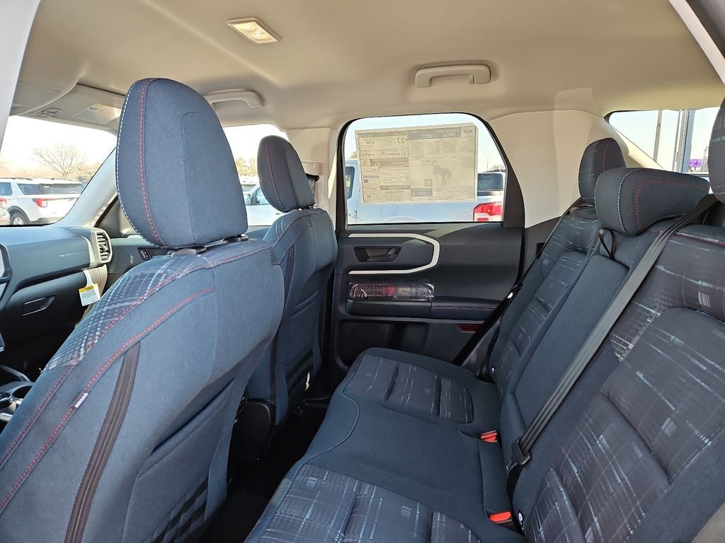 Red 2026 Ford Bronco Sport Heritage 4WD 8-Speed Automatic 4D Sport Utility This vehicle comes with the following features and options : Convenience Package (Front Driver/Passenger Seat Back Map Pockets, Heated 8-Way Power Driver's Seat, LED Fog Lamps, and Premium Wrapped Steering Wheel), Equipment Group 250A Standard Package (AM/FM Stereo, Plaid Cloth Front Bucket Seats, SiriusXM with 360L, SYNC 4 with Enhanced Voice Recognition, and Wheels: 17 Oxford White-Painted Aluminum), Ford Connectivity Package (1-Year Included), Internet access capable: 5G Modem - Ford Connectivity Package, 4-Wheel Disc Brakes, 6 Speakers, ABS brakes, Air Conditioning, Alloy wheels, AM/FM radio: SiriusXM with 360L, Apple CarPlay/Android Auto, Auto High-beam Headlights, Automatic temperature control, Brake assist, Cargo Management System (Shelf/Divider/Table), Compass, Delay-off headlights, Driver door bin, Driver vanity mirror, Dual front impact airbags, Dual front side impact airbags, Electronic Stability Control, Emergency communication system: SYNC 4 911 Assist, Exterior Parking Camera Rear, Four wheel independent suspension, Front anti-roll bar, Front Bucket Seats, Front Center Armrest, Front License Plate Bracket, Front reading lights, Fully automatic headlights, Heated door mirrors, Illuminated entry, Knee airbag, Low tire pressure warning, Occupant sensing airbag, Outside temperature display, Overhead airbag, Overhead console, Panic alarm, Passenger door bin, Passenger vanity mirror, Power door mirrors, Power steering, Power windows, Radio data system, Rear anti-roll bar, Rear Parking Sensors, Rear reading lights, Rear seat center armrest, Rear window defroster, Rear window wiper, Remote keyless entry, Security system, Speed control, Speed-sensing steering, Speed-Sensitive Wipers, Split folding rear seat, Steering wheel mounted audio controls, Tachometer, Telescoping steering wheel, Tilt steering wheel, Traction control, Trip computer, and Variably intermittent wipers.